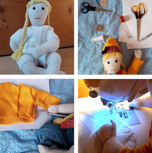 Oder ihr näht für Puppen-Mamas Puppen-Kleider aus alter Kleidung.