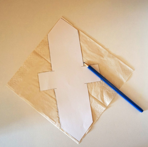 Legt den Schnitt auf den Stoff oder auf das Papier-Taschen-Tuch.